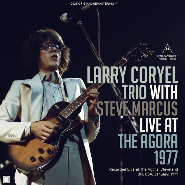 SGF-00556 // LARRY CORYEL TRIO WITH STEVE MARCUS / LIVE AT THE AGORA 1977 (1CDR) Recorded Live at The Agora, Cleveland, OH, USA, January, 1977 VERY-GOOD Soundboard Recording // 45 min Larry Coryell - electric guitar, acoustic guitar Miroslav Vitous - electric bass, acoustic bass Alphonse Mouzon - drums and guest * Steve Marcus - soprano saxophone 1. Guitar and Bass Acoustic Duet 2. DOOLIN 3. MY FAVORITE THINGS * 4. FREEDOM JAZZ DANCE * ラリー・コリエルのトリオに、ゲストでスティーヴ・マーカスがソプラノ・サックスで参加したライヴ音源。これ、一応サウンドボードではありますがいかんせんヒス・ノイズが強く、かなり強固にノイズ・リダクションを施しました。それもあり“VERY-GOOD”表記となっています。しかし、そこまでして磨いて商品化したのはメンツが魅力的だから。フリーキーでアヴァンギャルドでアグレッシヴな演奏が展開されています。ヴァイオリンのようなサウンド(ギターを弦で弾いている?)にアルフォンス・ムゾーンの手数多いドラミングで、マハヴィシュヌ・オーケストラを彷彿とする演奏。ジャズロック・ファン必聴です。