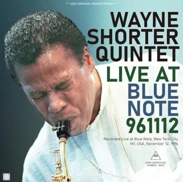 SGF-00552 // WAYNE SHORTER QUINTET / LIVE AT BLUE NOTE 961112 (2CDR) Recorded Live at Blue Note, New York City, NY, USA, November 12, 1996 Remastered from TapeTyrant Master // EXCELLENT Audience Recording // 128 min Wayne Shorter - tenor saxophone, soprano saxophone David Gilmore - guitar Jim Beard - keyboards Alphonso Johnson - electric bass Rodney Holmes - drums DISC 1 (Earyl Show) 1. Introductions - CHIEF CRAZY HORSE 2. VALSE TRISTE 3. AT THE FAIR 4. THE THREE MARIAS DISC 2 (Late Show) 1. Introductions 2. unknown 3. ANGOLA 4. ON THE MILKY WAY EXPRESS 5. OVER SHADOW HILL WAY (Including Drum Solo) 6. CHILDREN OF THE NIGHT ウェイン・ショーター・カルテットの1996年ブルーノート・ジャズクラブでのライヴ音源。オーディエンス収録で、近年デジタル化が進むテーパーTapeTyrantのマスターを使用。TapeTyrantマスターの中でもかなり上位に位置するであろう素晴らしい音質で、普段から音質に関してやや厳しく評する、ある意味正直なレヴューを記すスターゲイザー・レーベルも太鼓判を押します。若干余裕のあった出力をギリギリまで高めてあります。アーリー・ショウのイントロは、まずショーターのサックスから始まりそこにステージアナウンスがバンドを紹介するといった趣あるもの。セカンド・ショウのイントロはステージアナウンスのみで始まっている為別トラックとしてあります。ウェザーリポート時代の戦友アルフォンソ・ジョンソンがエレクトリック・ベースを弾いており、シンセも加わったエレクトリック・バンドによる素晴らしい演奏を高音質で楽しめる好タイトルです。