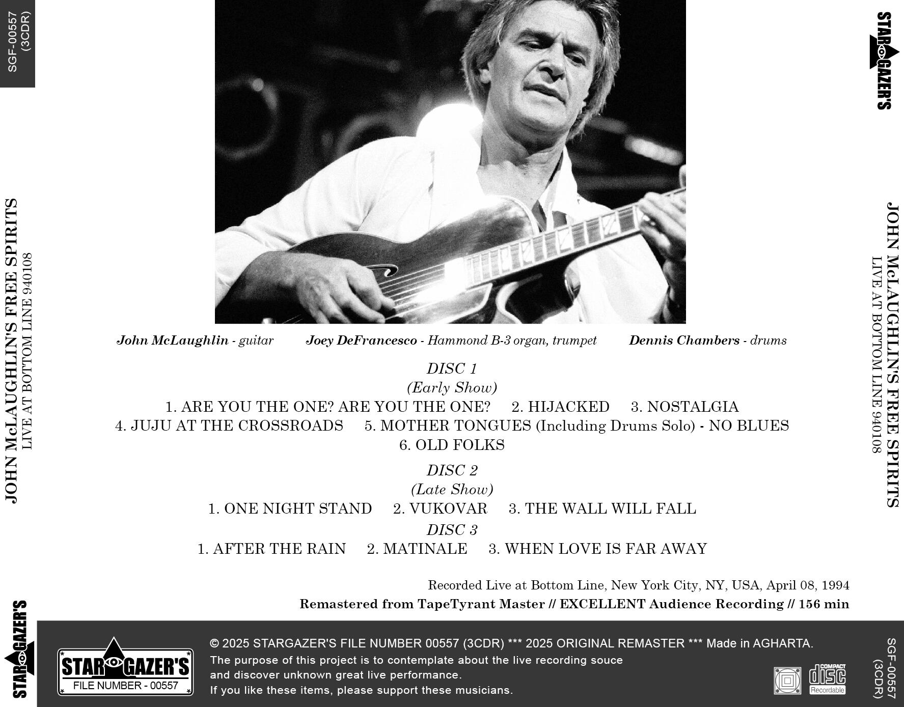 SGF-00557 // JOHN McLAUGHLIN'S FREE SPIRITS / LIVE AT BOTTOM LINE 940108 (3CDR)
