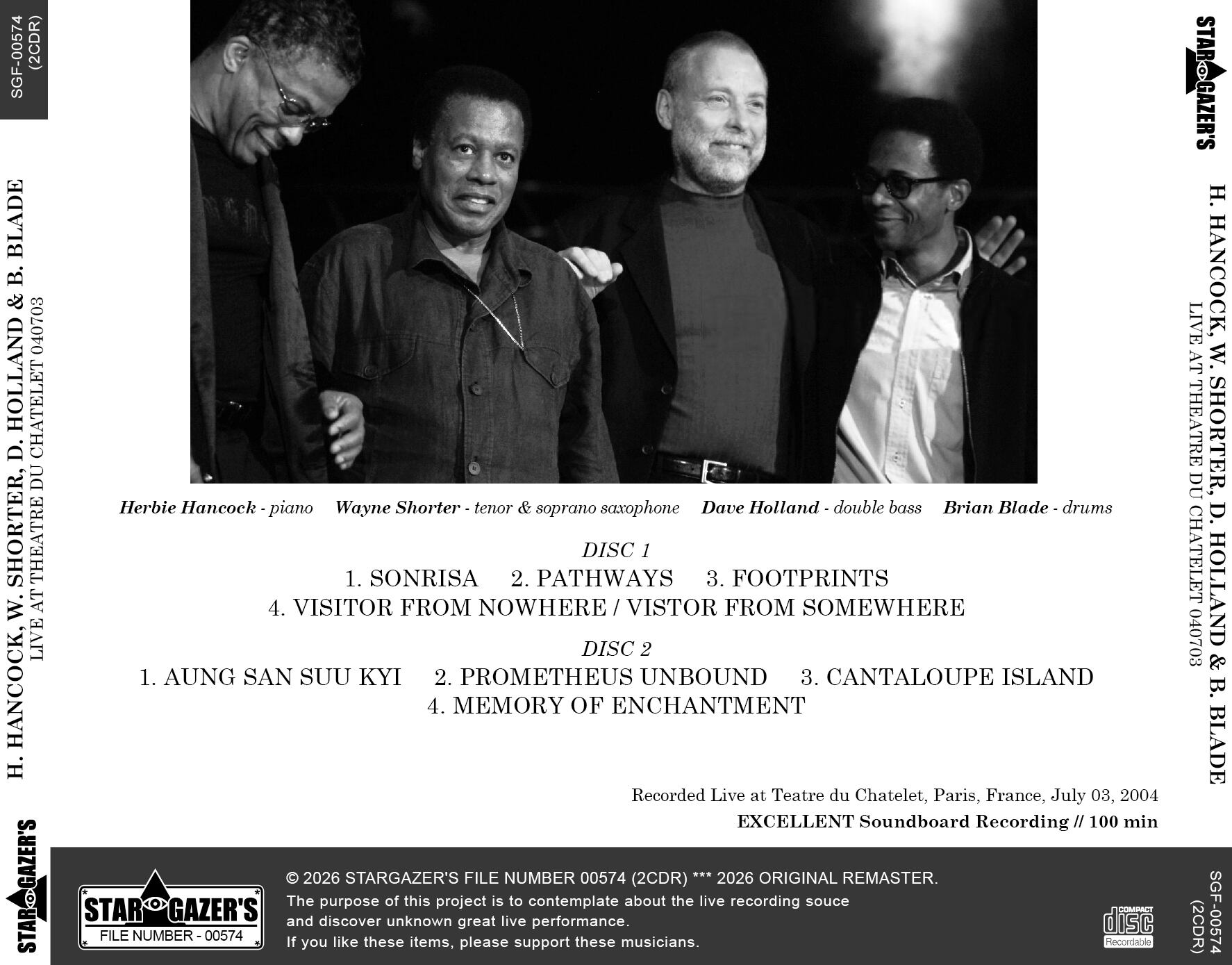 SGF-00574 // HERBIE HANCOCK, WAYHE SHORTER, DAVE HOLLAND & BRIAN BLADE / LIVE AT THEATRE DU CHATELET 040703 (2CDR)