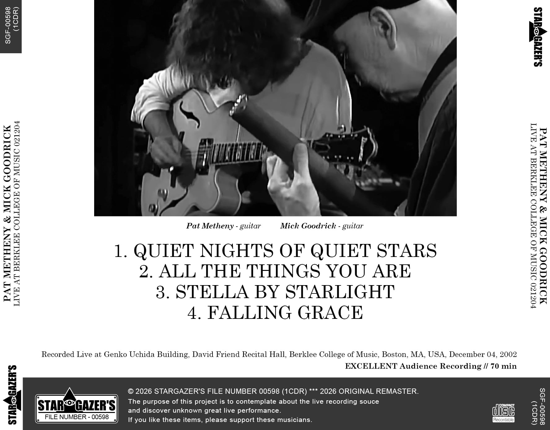 SGF-00598 // PAT METHENY & MICK GOODRICK / LIVE AT BERKLEE COLLEGE OF MUSIC 021204 (1CDR)